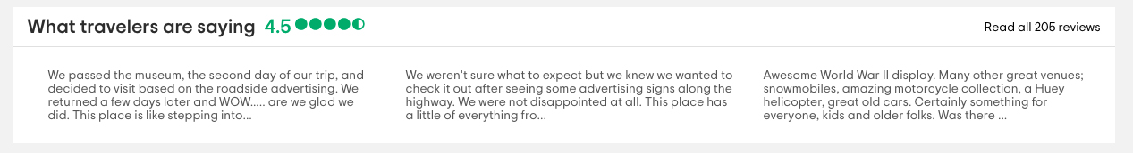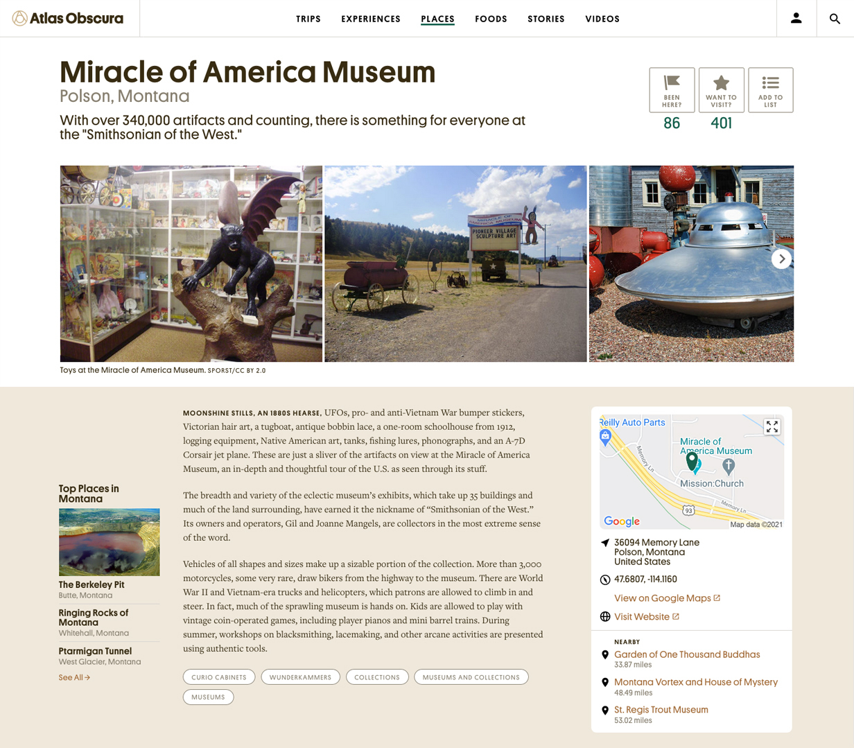 Another review: “Almost drove by without stopping. What a mistake that would have been. … It was a museum unlike we have ever seen because of the variety and uniqueness. The largest collection of ‘stuff’ we have ever seen.