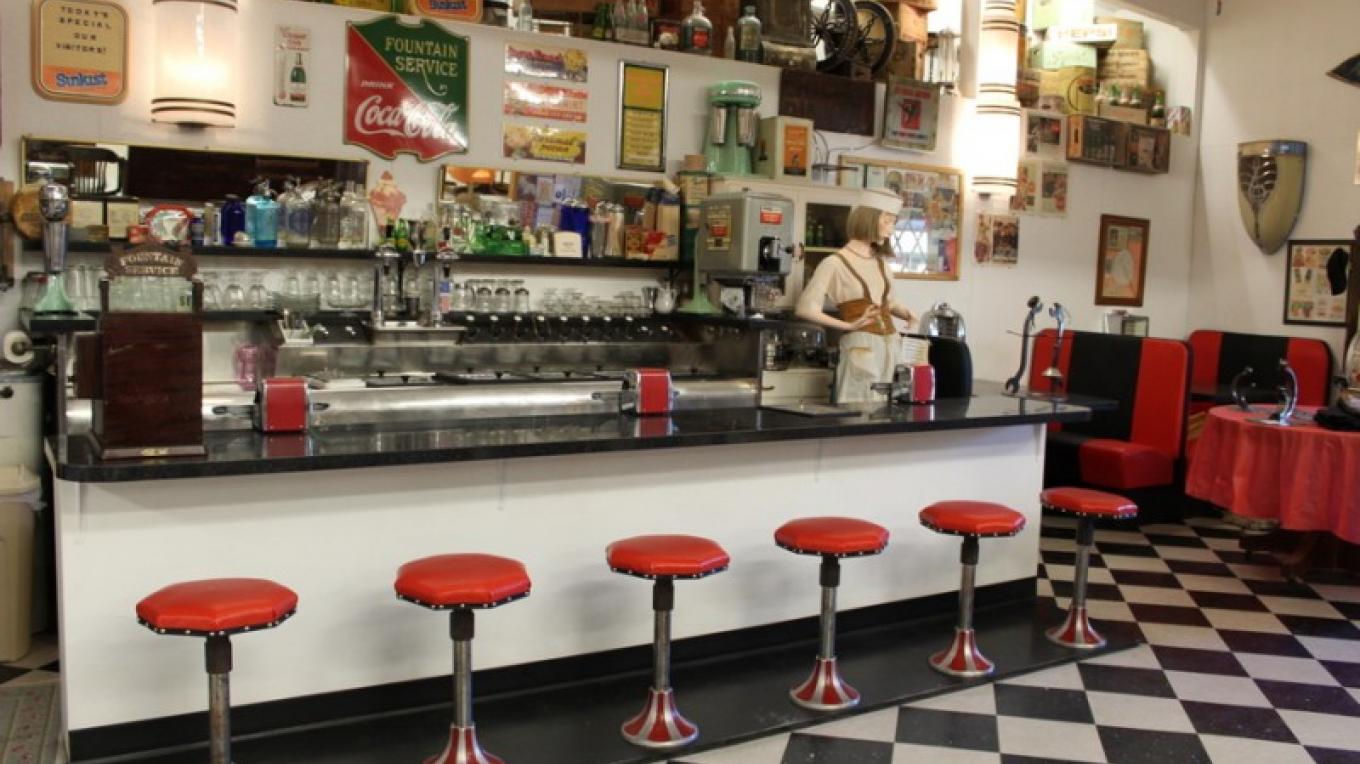 Inside, there are floor-to-ceiling cabinets and displays with Native American artifacts, dishes, guns, kitchen items, old toys, phonographs, World War II uniforms and patriotic signs. Near the back door, there’s a full-size soda fountain. The counter, floor and walls are filled with signs, equipment and other items associated with an old-time soda fountain.