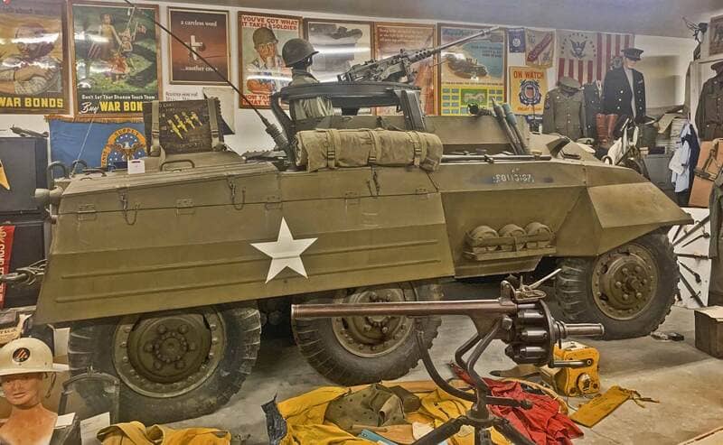 There’s a large collection of American military equipment, vehicles, and gear, primarily focused on the World Wars and post-Civil war eras.