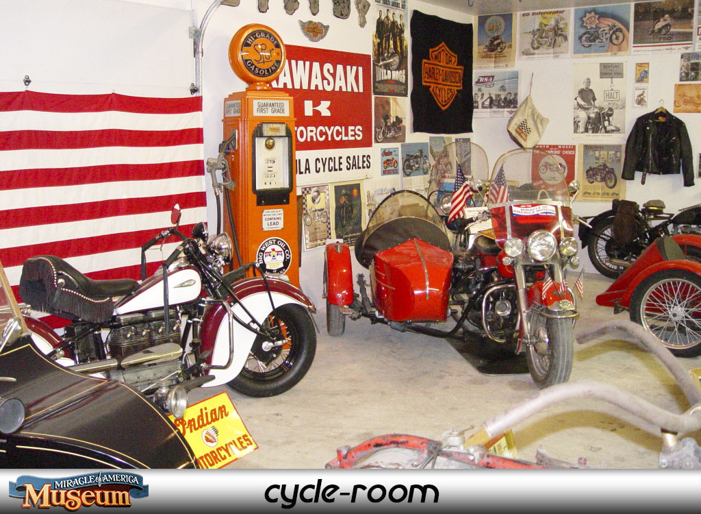 Come see our growing collection of over 70 antique motorcycles and over 3000 pieces of cycling memorabilia.